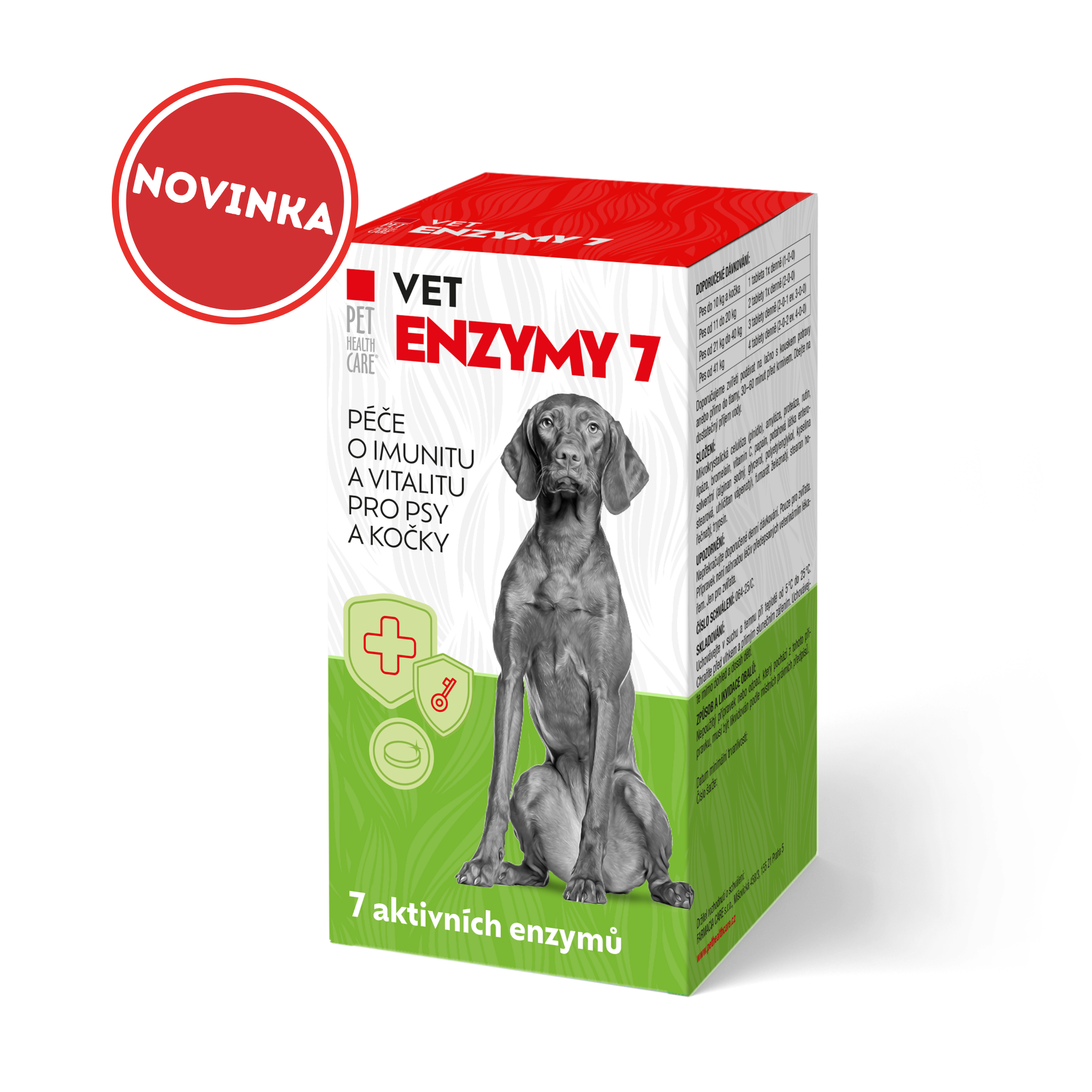 VET ENZYMY 7 – Péče o imunitu a vitalitu jsou enterosolventní tablety pro psy a kočky s komplexem 7 vysoce aktivních enzymů amyláza – proteáza – lipáza (pankreatin), papain, bromelain a trypsin, obohacený o rutin, železo a vitamin C.